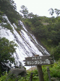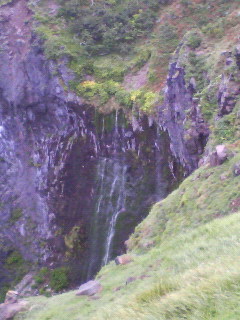 2007/09/19 Category : 携帯 フレペ 滝第2弾。 知床フレペの滝。 遊歩道(と言うか…ちょっとしたハイキング?)を1キロほど歩いて行った岩壁に。 川が流れ込んでる滝とは違って、低い草むらから急に滝になってるン。