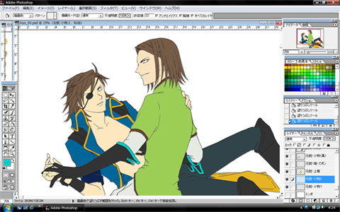2008/08/15 Category : BSR no title わぁ~奇跡の脱稿!(自分でキセキ言うな…) 印刷屋さん〆切りの前夜、どうしても気になって表紙絵を描き直すとか阿呆の所業に出た久我です。どうも! まぁ…描き直してコレかよってのは…うん、そっと胸の内で呟いててください。すみませぬ。 そんなこんなで。 不備なければ、8月24日のスパコミ関西にてナリダテ本新刊出ます。 何でだかナリダテ本。 因みにスペースはチカダテです。ごめんなさひ… 画像は、昨日の深夜に表紙絵のラフを描き直しはじめ、集中力のもつうちに、と取り敢えず単色だけ配置した状態… これを仕上げました。 また近日中に新刊情報アプらせて頂きますです。 筆頭の陣羽織の下が素肌なのは…甲冑が面倒だっただけです orz ちょっぴりジャ○に訴えられそうなくらいに誇大表現な表紙絵。