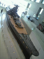 2011/09/25 Category : 携帯 旅日記3 旅日記其の三。思ってたよりじっくりたっぷり堪能した後、その向かいにある大和ミュージアムに。名前にもある戦艦・大和をはじめとして、こちらは戦艦メインです。そして、戦艦と切り離せない戦争について展示されていました。と、くれば…呉、広島、原爆…ワシの超個人的な意見です、これによって何か啓蒙したりだとか比喩したりだとかはありません、念の為。…まぁ何方もそんな風に思われないでしょうけれども。前置き長くなりました。自分、原爆ドームが物凄く怖いんですわ。何がどうって説明できないんだけれども、とにかく怖いん。たぶん、小中学校時分に、夏になったら職員室前の廊下にビッシリと展示されていた戦争に関するパネルが要因じゃないかと。未だそういうパネルを見ると、漠然と得体の知れない怖さを覚えるんですよ。そんなワシなので、この大和ミュージアムの展示物には苦手な分野のものも多くありました。でも!それでも!見に行って良かったです。具体的にどんなところが、とは表現出来ないんですが、でも、知らないより知った方がいい内容だと思いました。なんか、何が言いたいか分からん文章で申し訳ない…