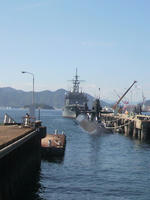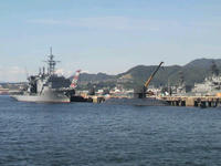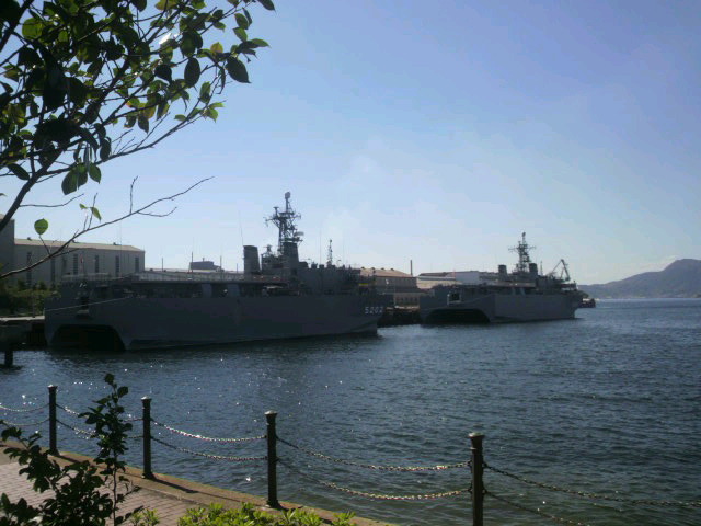 2011/09/25 Category : 携帯 旅日記4 旅日記其の四。さてさて。家人がイメージしていたらしい予定より2時間の遅れで、次のスケジュールへ。車で数分ほどの近くにある、アレイからすこじま。ここから現役のお船が見えるのだそうで。日曜なら、間近で見たり乗船したりといったイベントあるらしいんだけれども、生憎と土曜だったのと、この土日は神戸だか天保山だかにお船が行っちゃっててイベントはお休みなんだそうな。まぁなんしか、フェンス越しに眺めてきました。……で、呉を後にして次の宿泊地・道後温泉に向かって移動。当初の予定では途中、大三島の大山祇神社に寄るつもりだったのに…予定がおして、行けなかったでござる…残念。あ、そうだ。大和ミュージアムの隣にあったウッドデッキを歩いていると、見ず知らずのオイチャンがデッキの説明をしてくれました。あと近くのガイドパンフをくれたり、人気の名所を教えてくれたり…ホントの意味で自然なおもてなしを受けてしまいました・笑。趣味でやってはるんやろけど、凄いなぁ、と。あ、服装はいたって普通でしたよ(そらそうやろっ)